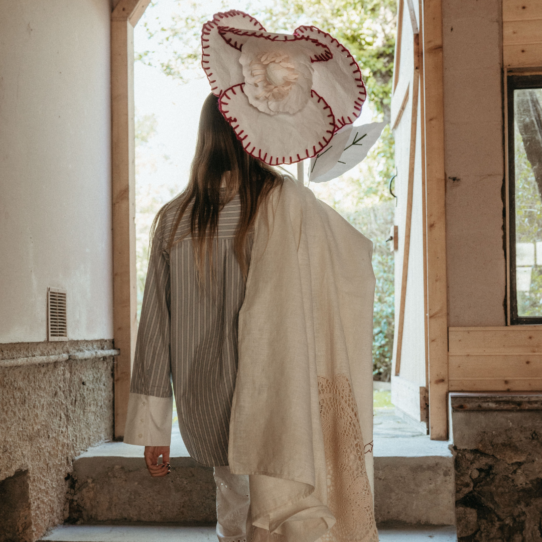 Diseño piezas únicas que luego bordamos a mano con dedicación, cuidando cada detalle para transformar una idea en una pieza especial.