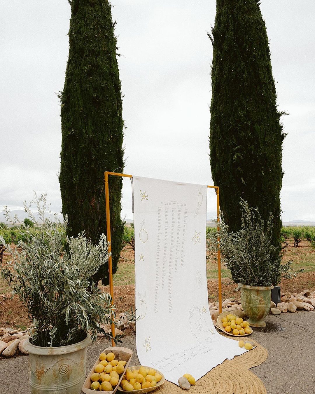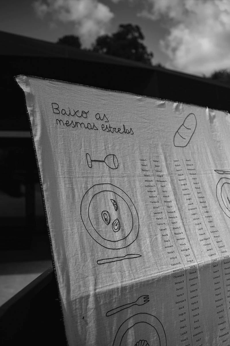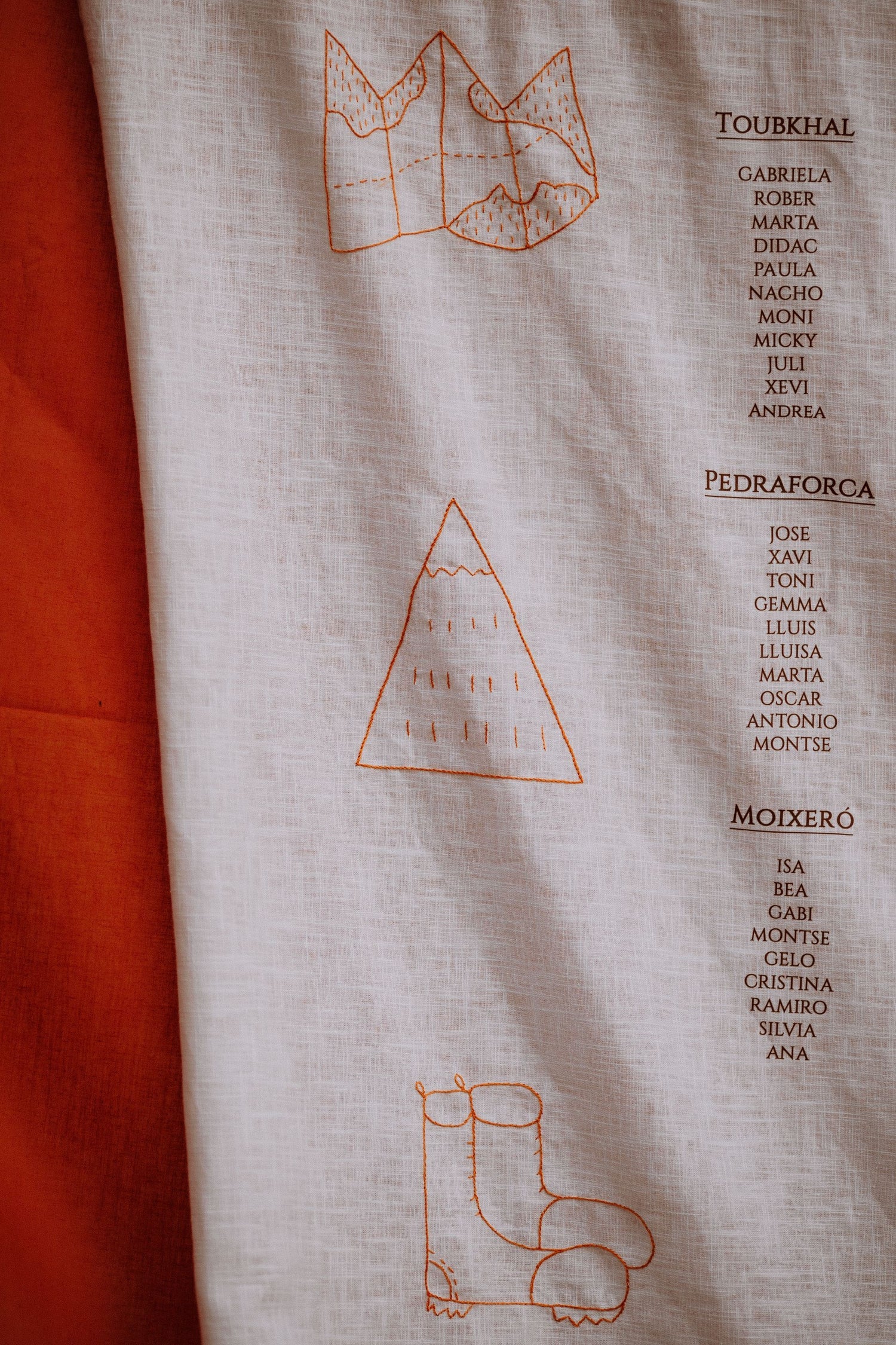 “Los nombres de las mesas eran nombres de montañas que habíamos subido Pepe y yo y By Nana los bordó en un mantel de lino. Añadimos también la frase de ‘Ain’t no mountain high enough…’ y elementos de montaña. Poder tener ese mantel de recuerdo después en casa nos hacía mucha ilusión”